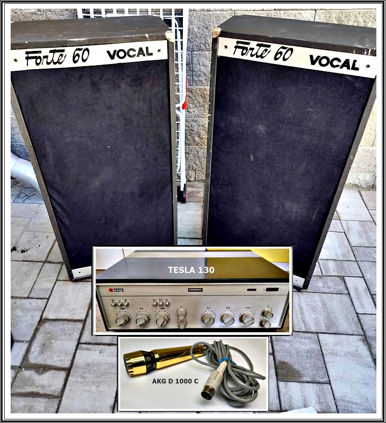Tohle byl zpěvový aparát SPEKTRUM - ILJA KOČÍ , ZDENA ZUKAL , BOB STEIGERWALD & JIRKA "GAPPA" DOLEŽAL - 4x REPRO FORTE , MUSIC 130 + ZLATÝ AKG / v tý době opravdu nevídaný a málo sehnatelný aparát . Měli jsme se fakt z čeho radovat !!